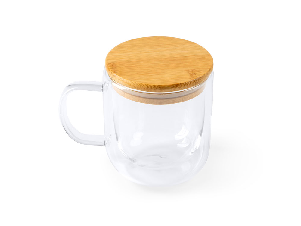 Кружка INDAL с бамбуковой крышкой, 280 мл, прозрачный/натуральный