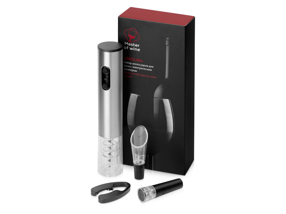 —Набор винных аксессуаров с электрическим штопором из стали, на батарейках (P)