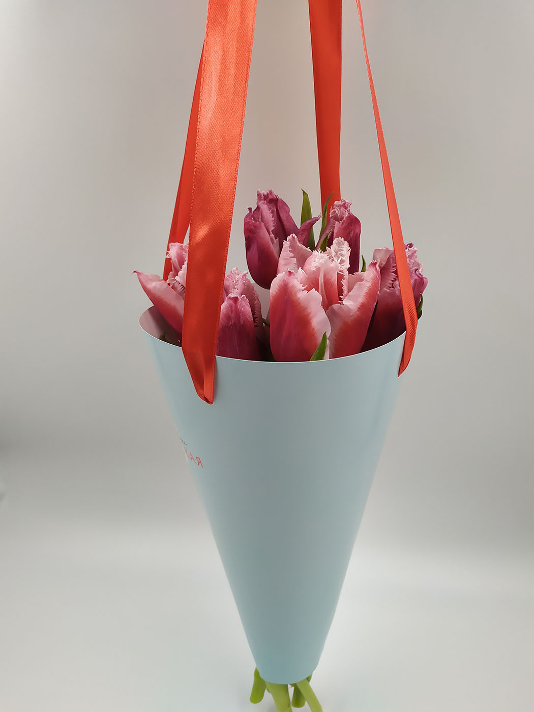 Вам останется только подобрать атласные ленточки и завязать их на конус-пакеты. Но конечно можете доверить это нам и получить уже конус для цветов с ручками.